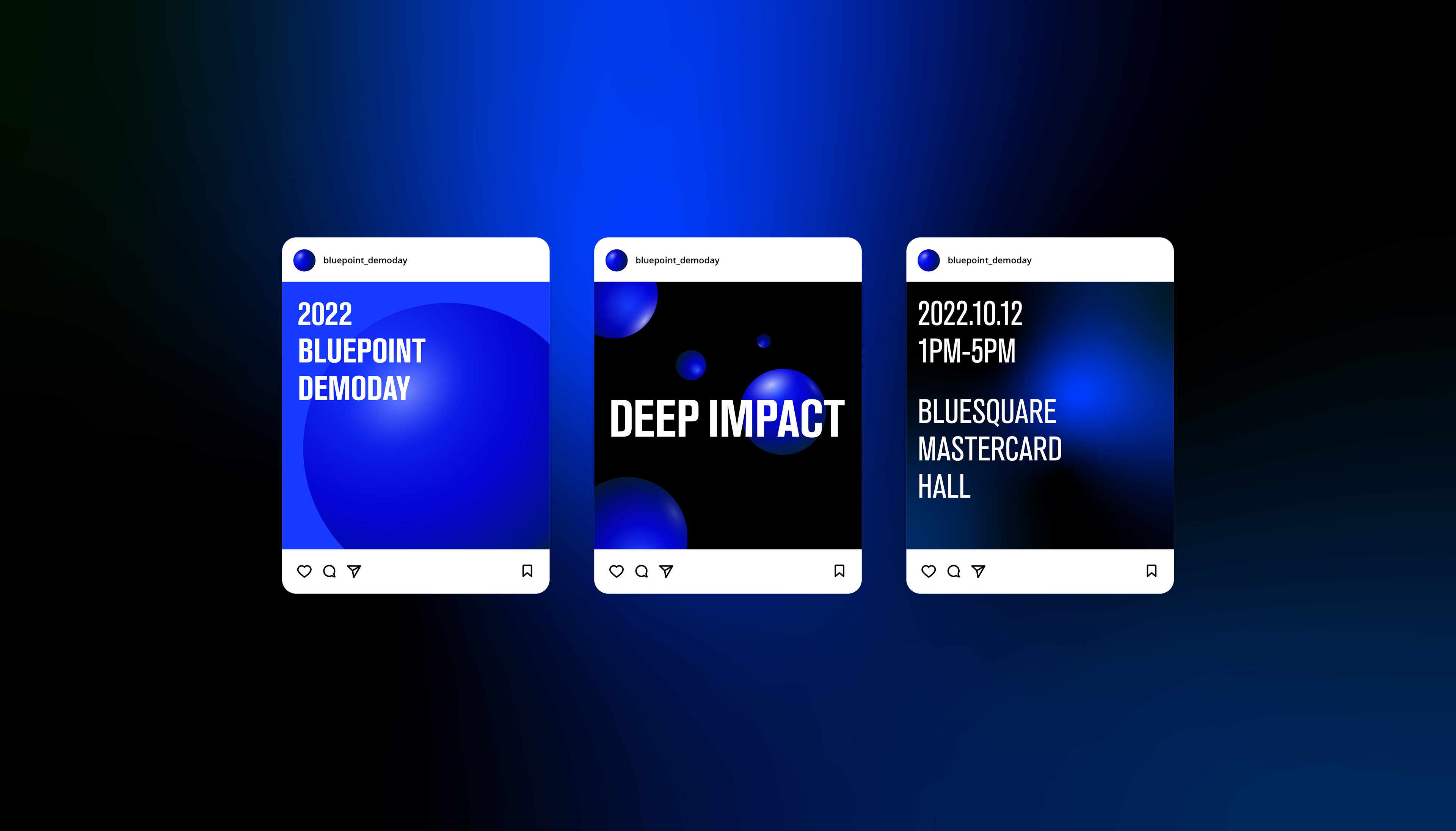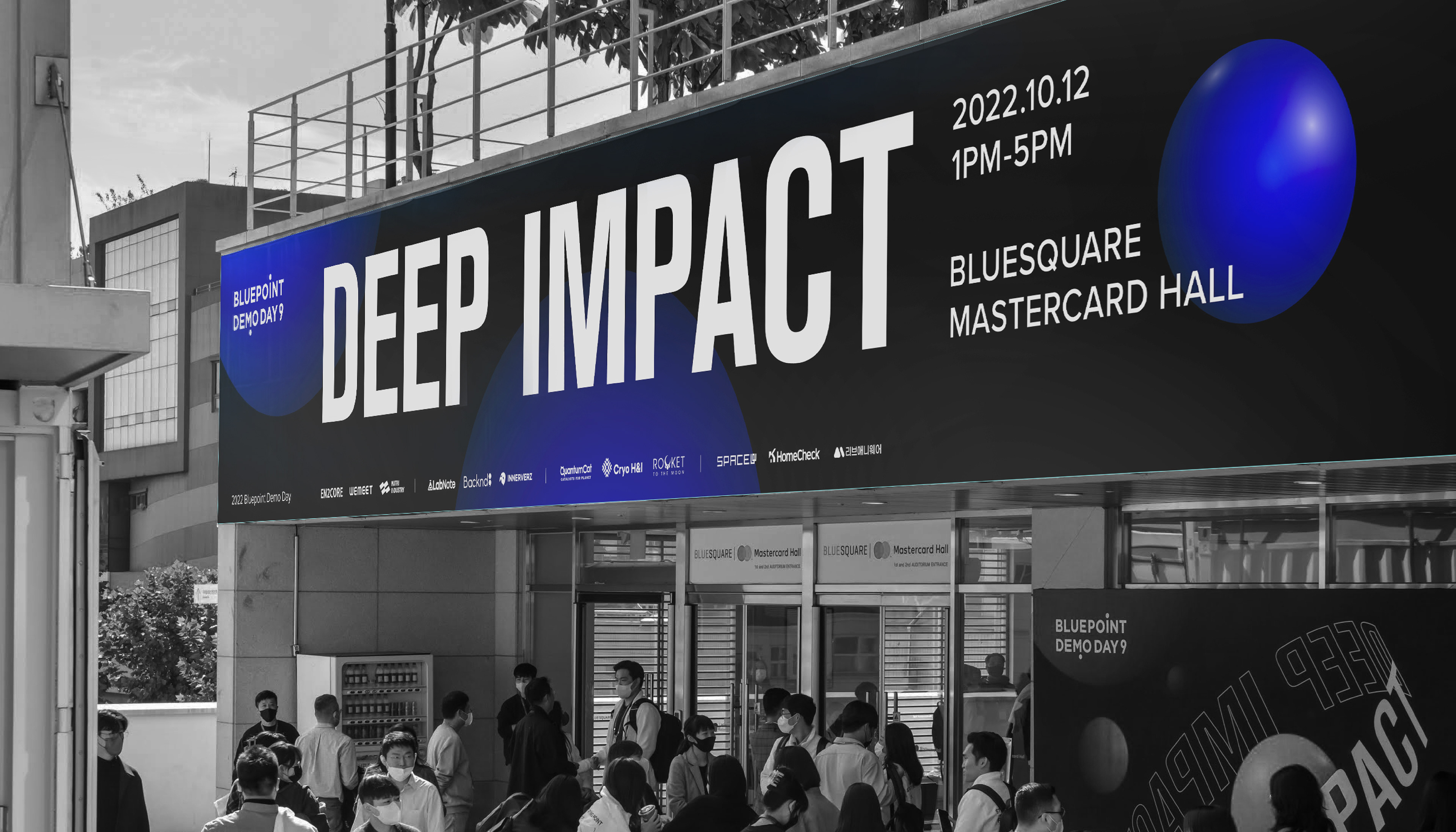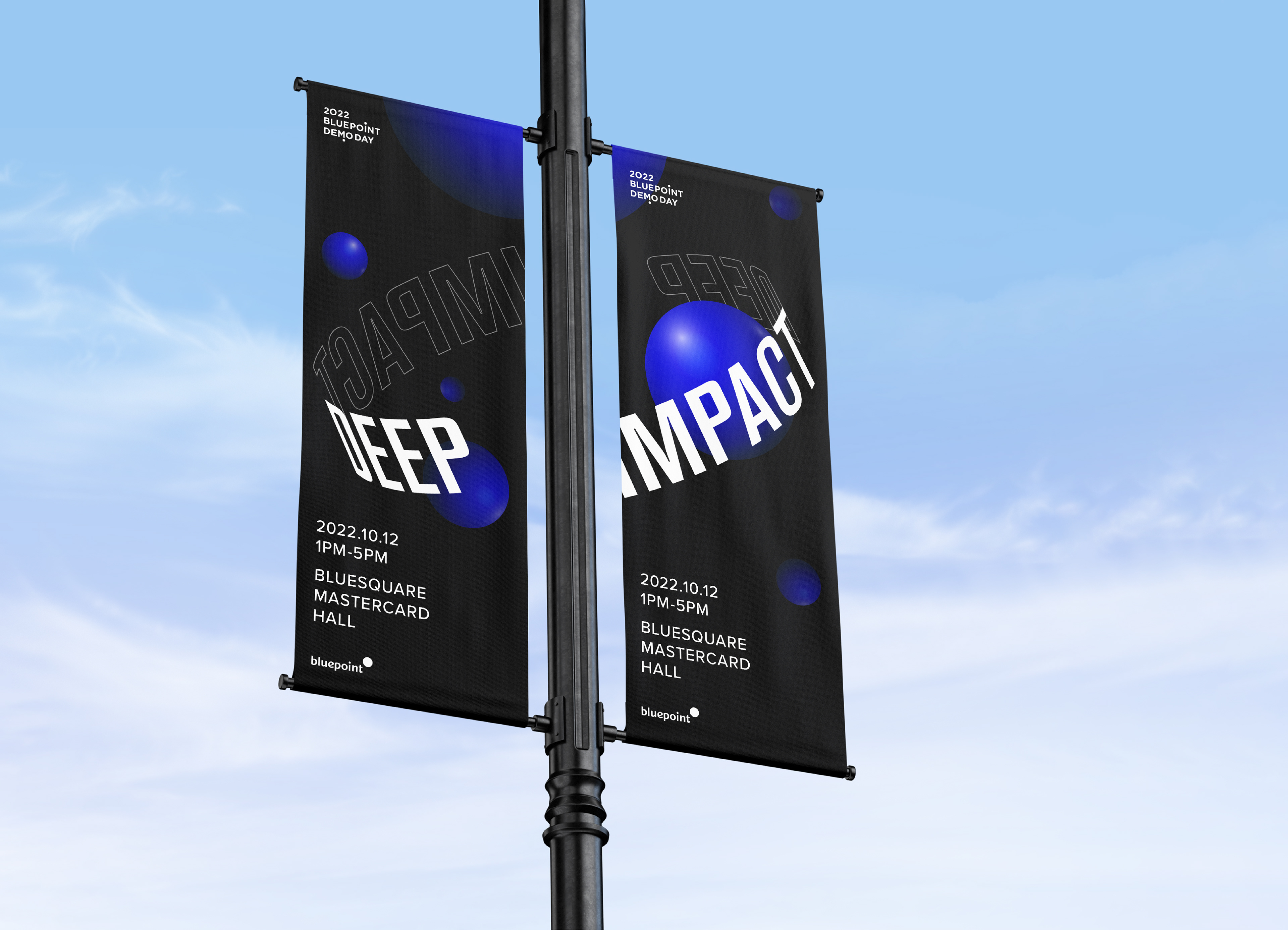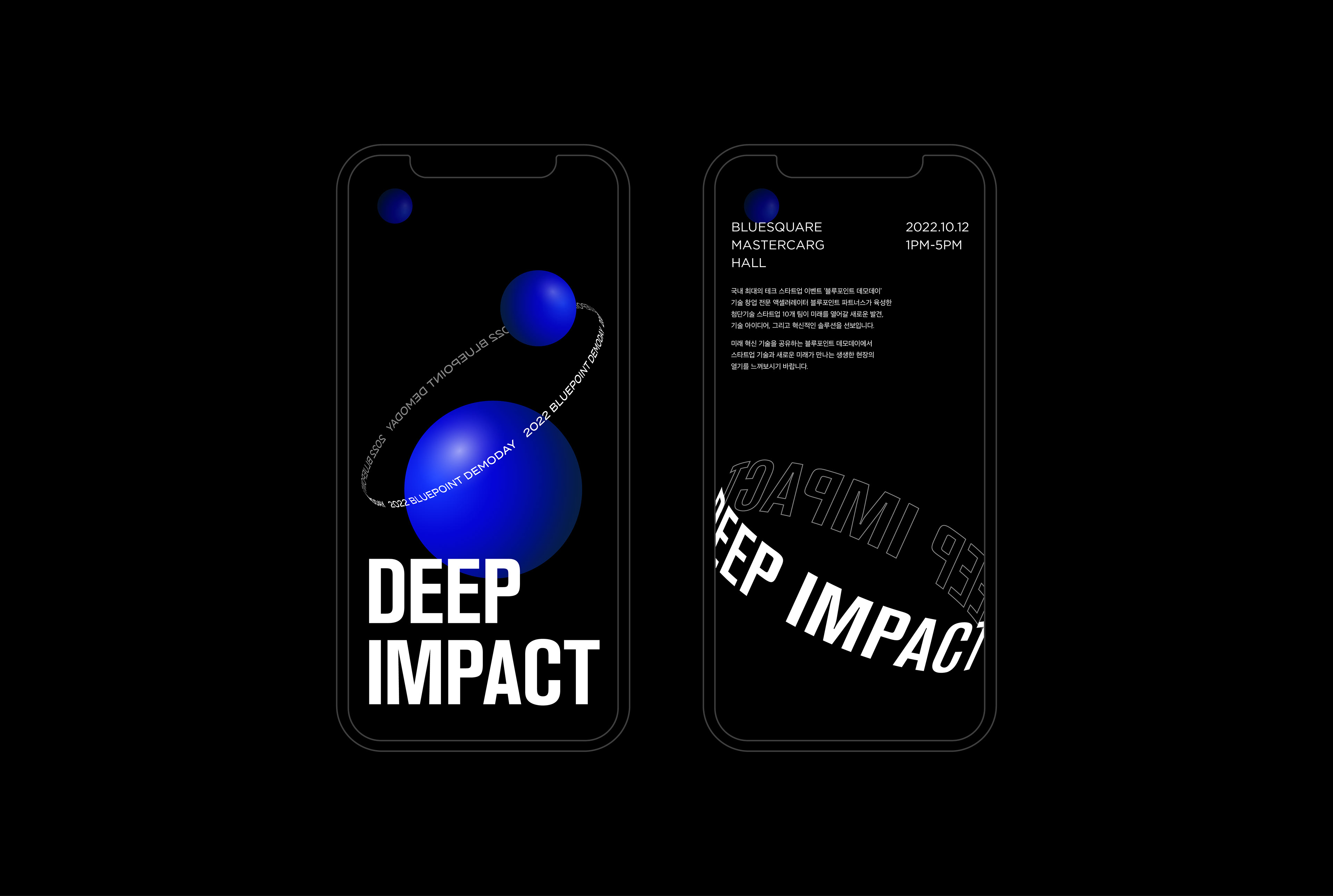 Bluepoint Demoday is the Korea’s largest tech startup conference to share a broad vision for startups and various future-oriented topics. The theme of this year’s event was “Deep Impact” and it helped attendees share new visions and capabilities of the so-called ‘New-Rule Makers’ who are innovators making technologies and services in case a variety of impacts happen in the future. For the first Bluepoint Demoday, We paved the way for the identity design system for it. Moreover, we has developed an identity and main design for “Deep Impact”, the theme of this year’s Bluepoint Demoday.