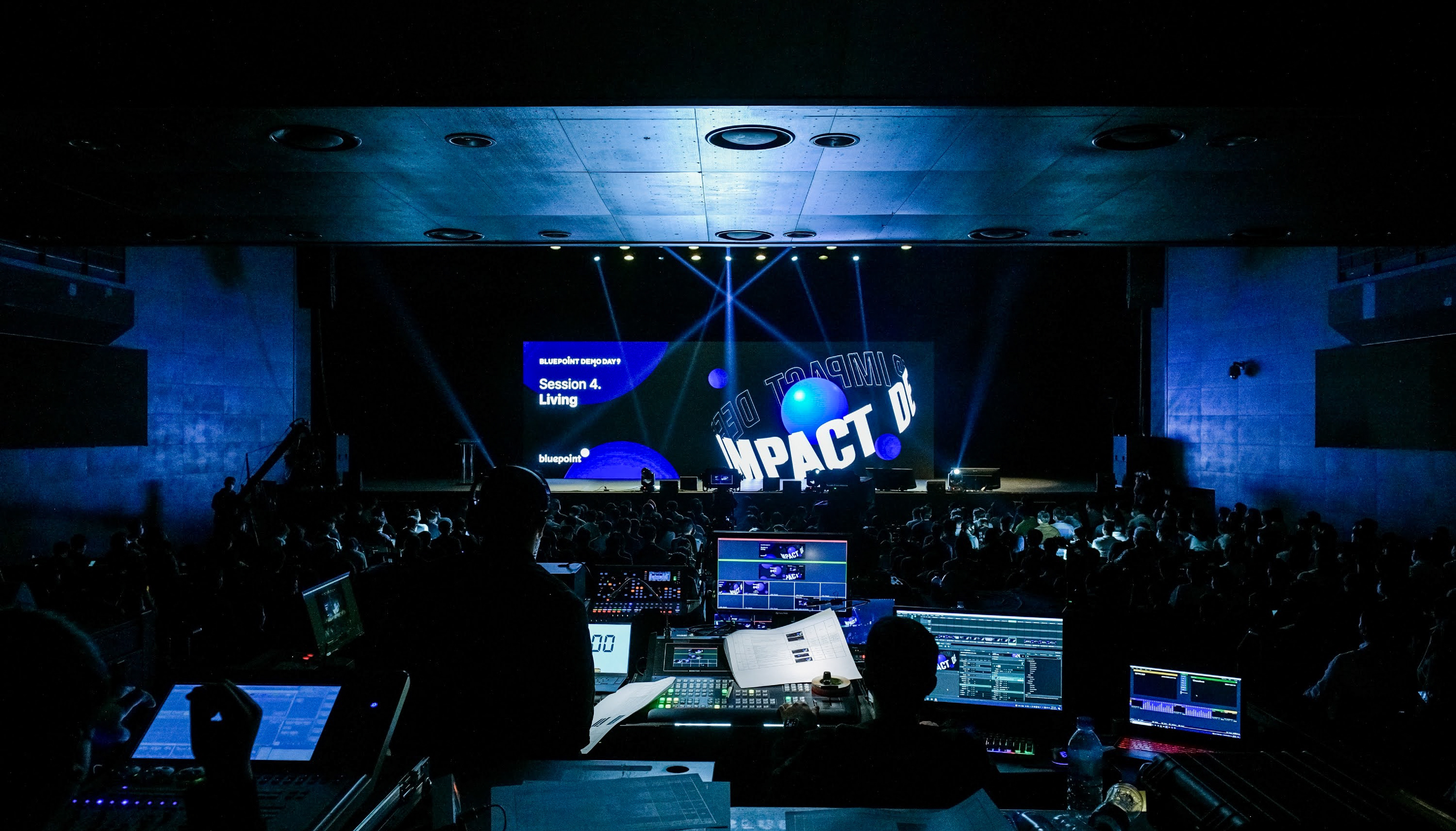 컨퍼런스의 영감이 된 미미레더 감독의 영화 “Deep Impact”와 NASA가 진행한 동명의 프로젝트인 “Deep Impact”를 광활한 우주의 이미지와 강렬한 타이포그래피 타이틀의 조화를 통해 분명하고 직설적으로 표현하였습니다. 특히 블루포인트 파트너스의 상징적인 시각 자산인 블루닷을 활용하여 개발한 블루플래닛은 컨퍼런스의 주요 그래픽 요소로 활용되고 동시에 주관사의 정체성을 공고히 하는 역할을 하였습니다. 무대 위 화면에서 행성띠를 연상시키며 회전하는 타이틀 로고는 그 형태와 무빙을 통해 청중에게 지속적으로 컨퍼런스의 타이틀인 “Deep Impact”를 각인시키는 역할을 합니다.