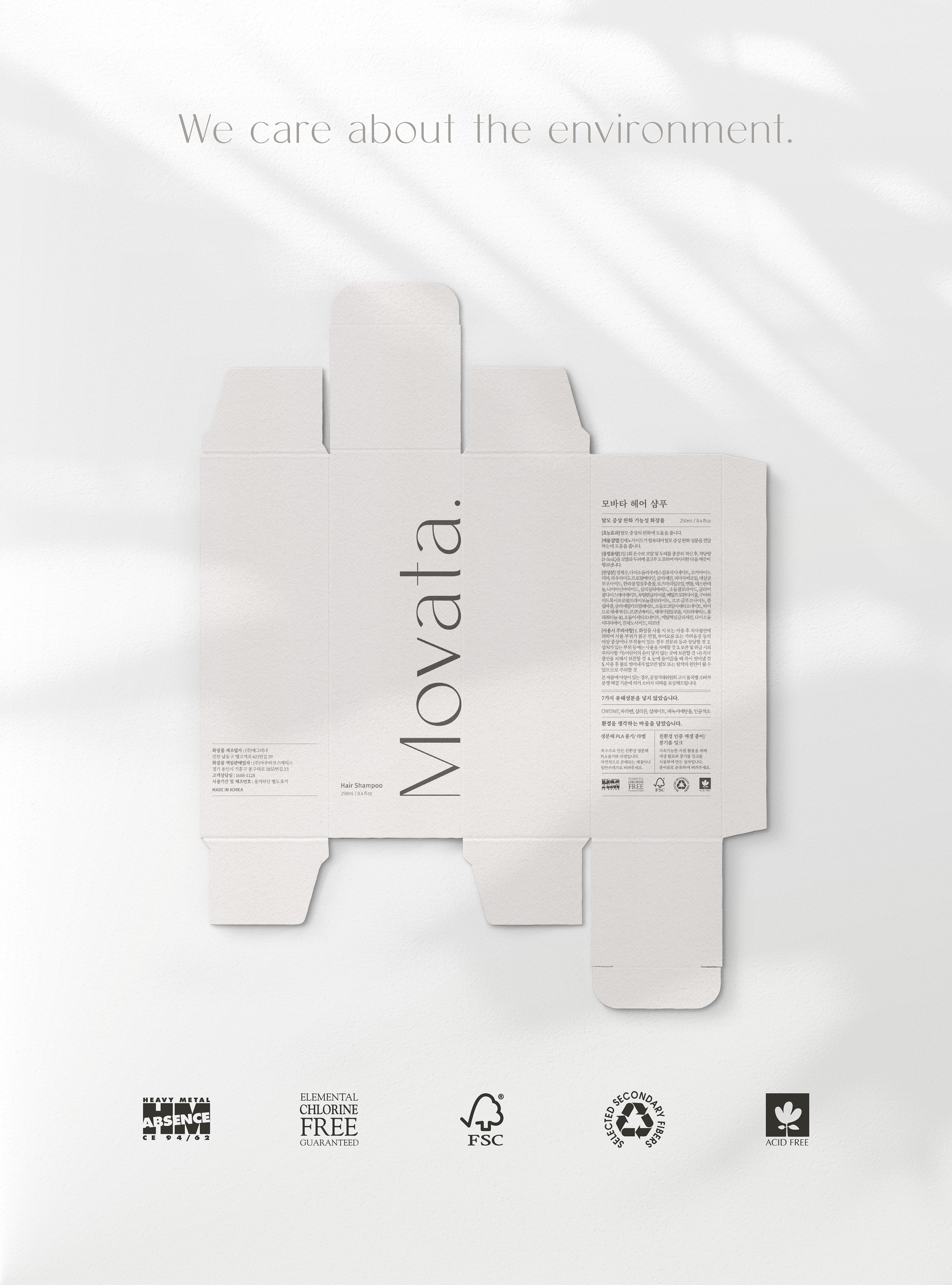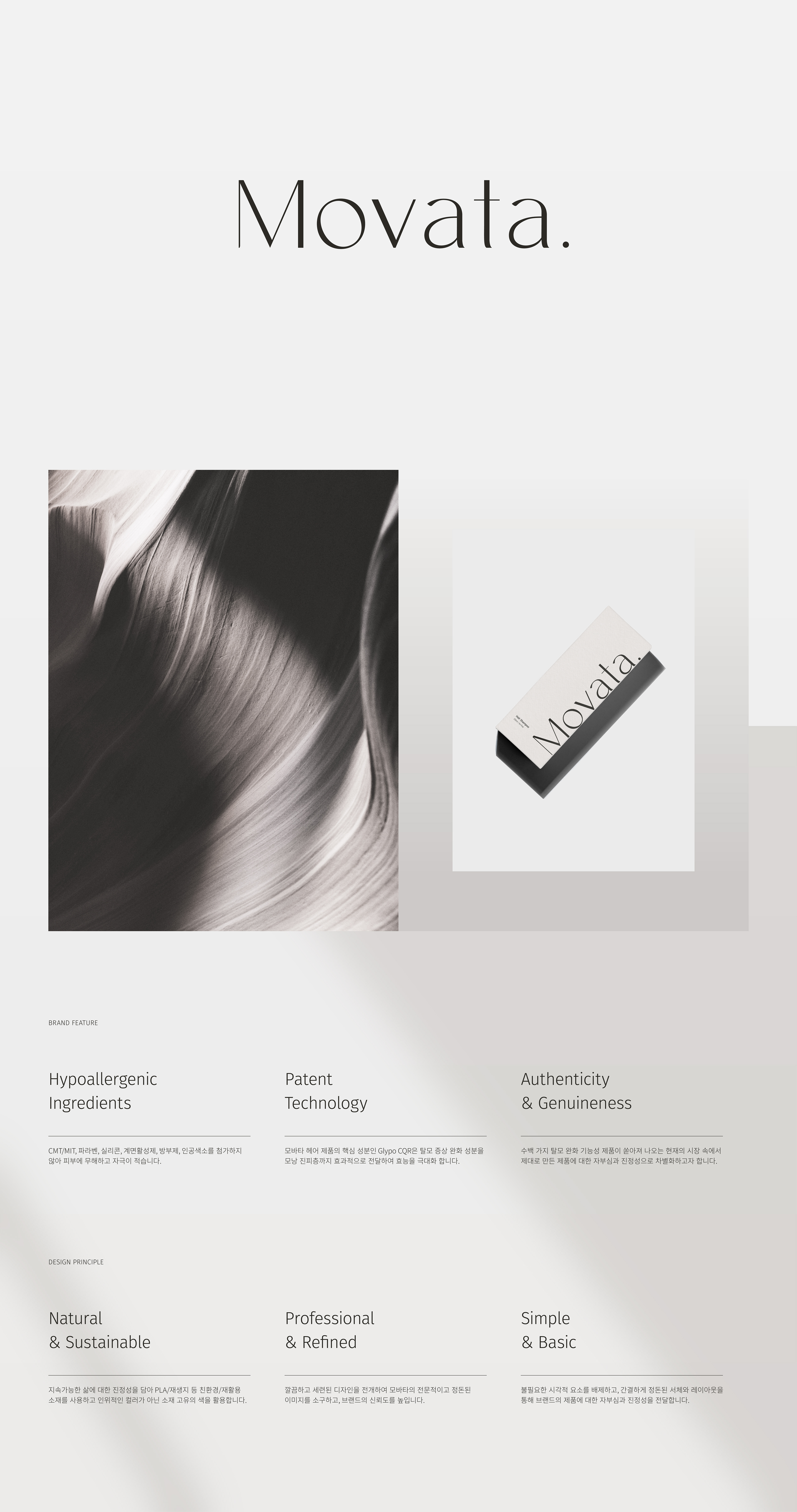 모바타는 인류의 건강, 나아가 자연의 지속 가능성을 생각하는 저자극, 무해 성분의 기능성 헤어케어 브랜드입니다. 환경과 미래를 생각하는 브랜드 철학을 바탕으로 친환경 디자인을 최우선으로 고려하여 일관되고 정돈된 브랜드가 되고자 하였습니다.