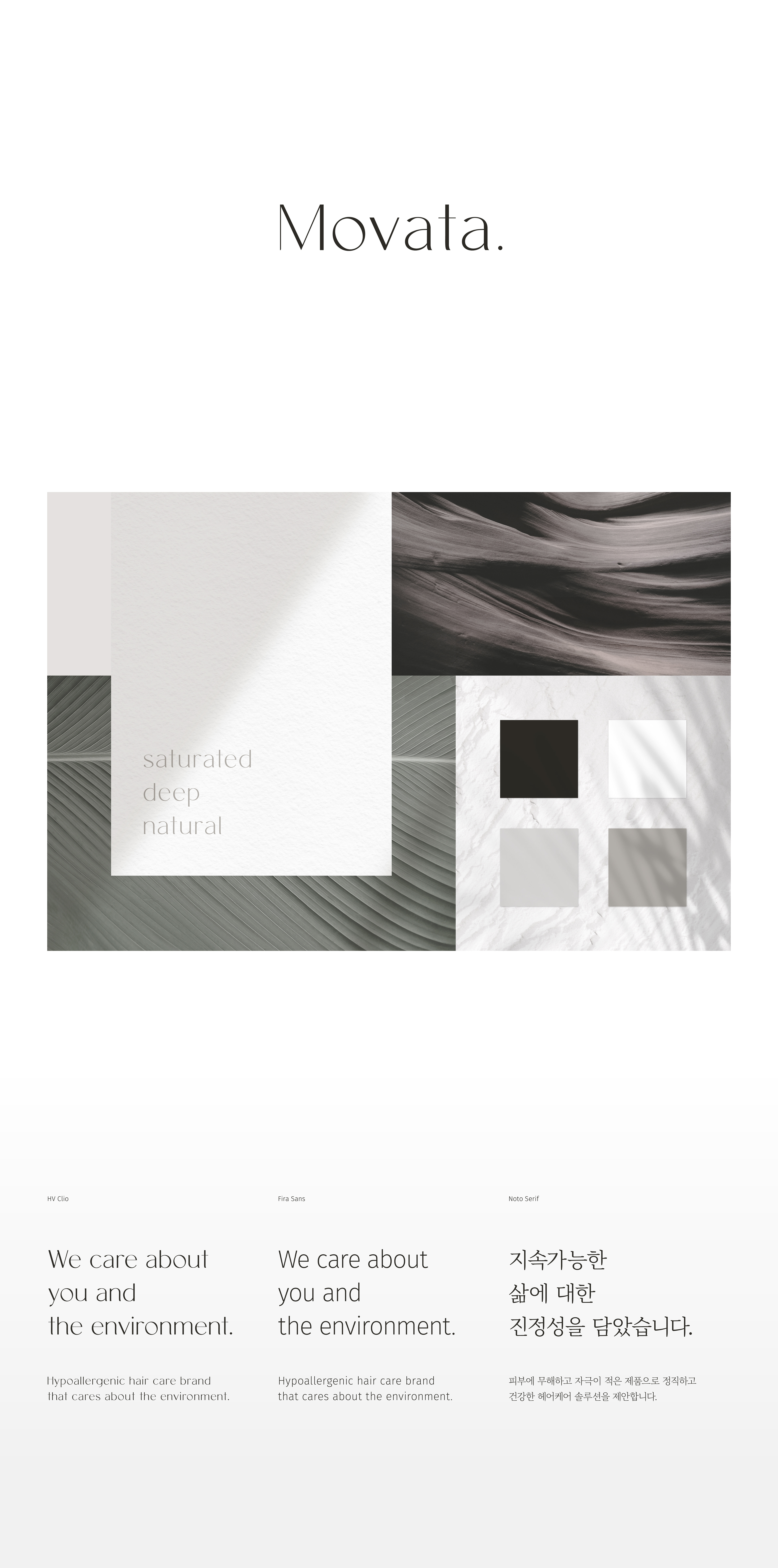 Movata is a haircare brand that cares about the environment and sustainability. In developing Movata’s brand identity, we gave it a simple logo free of decorative elements because we saw in Movata an image of professionalism and order.