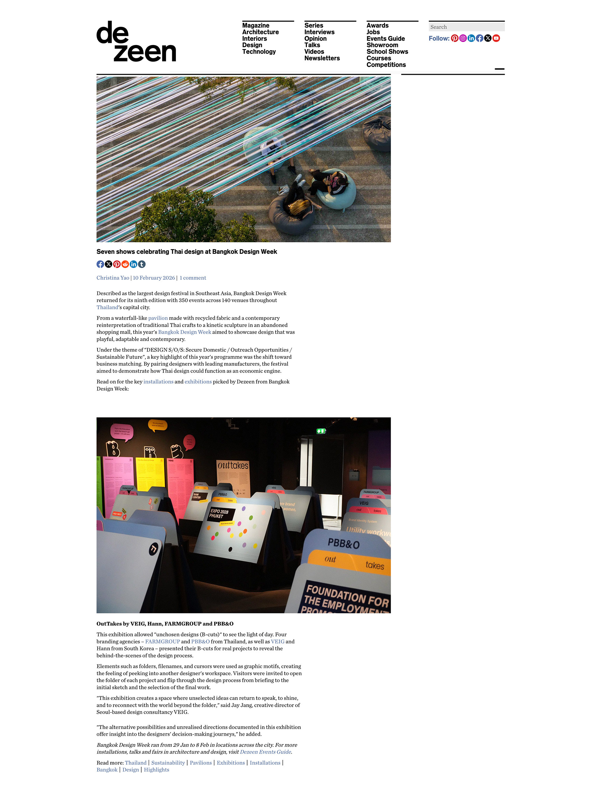 세계적인 권위의 건축 및 디자인 매거진 Dezeen에 OUTTAKES 전시 프로젝트가 소개되었습니다.