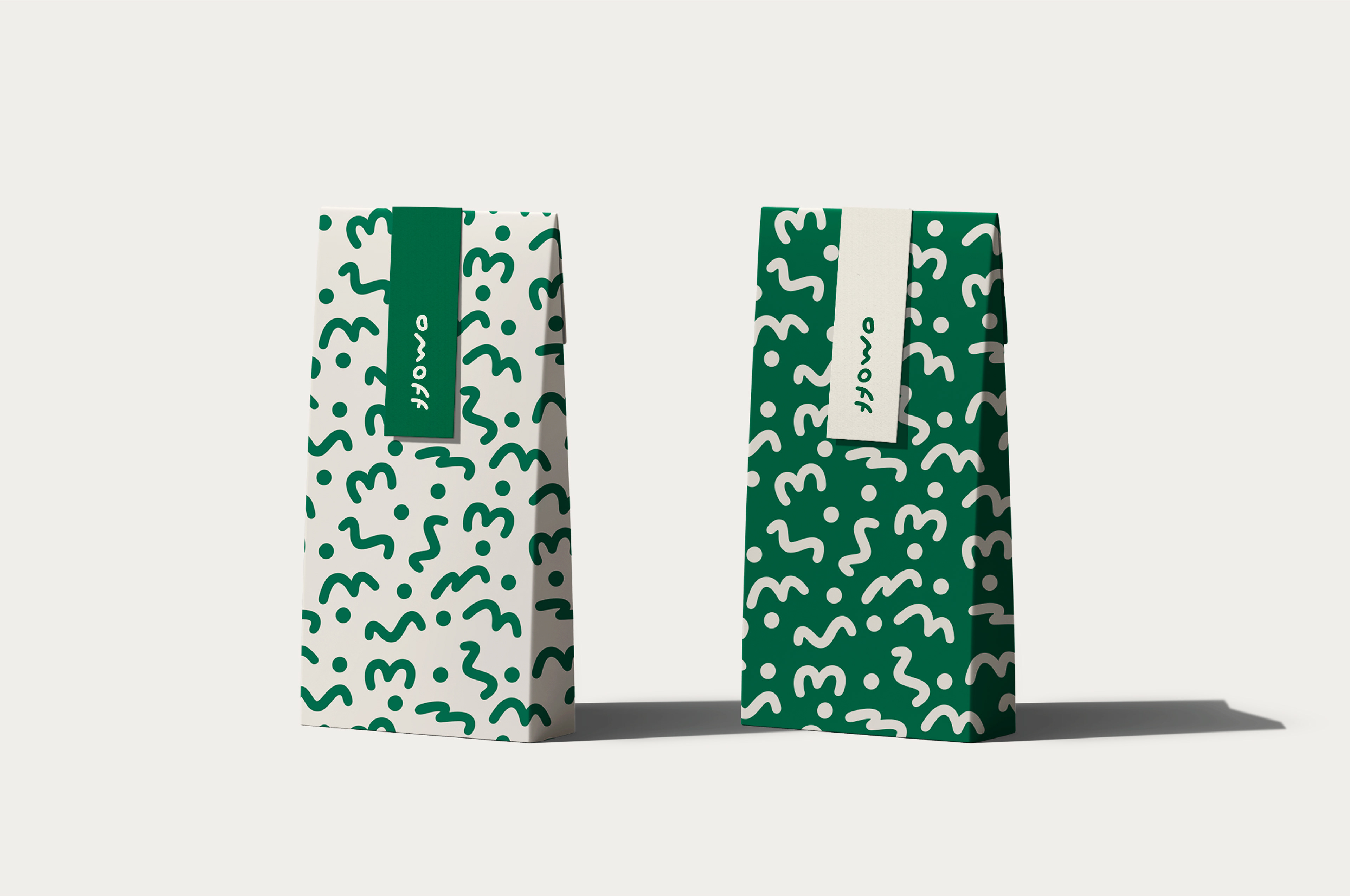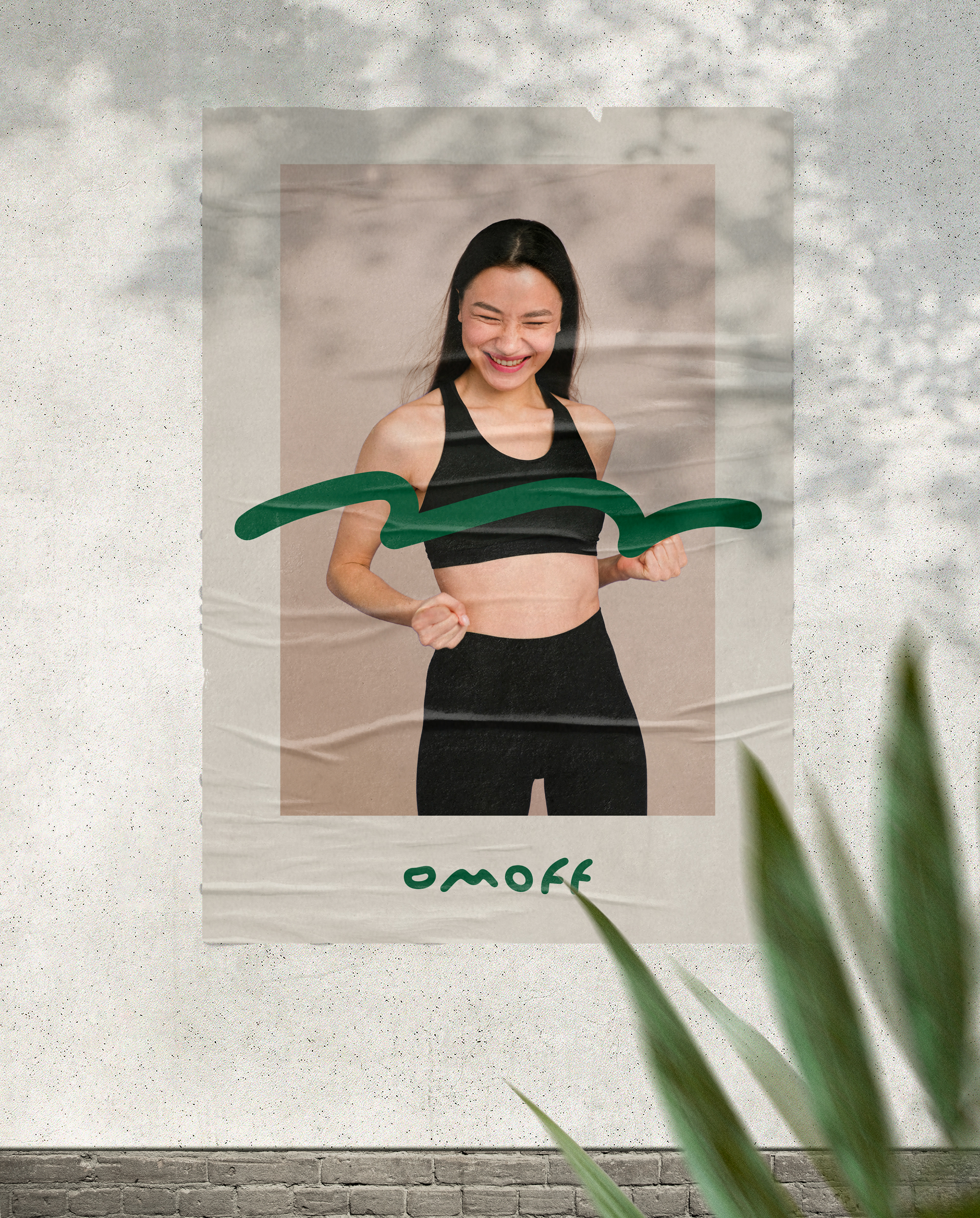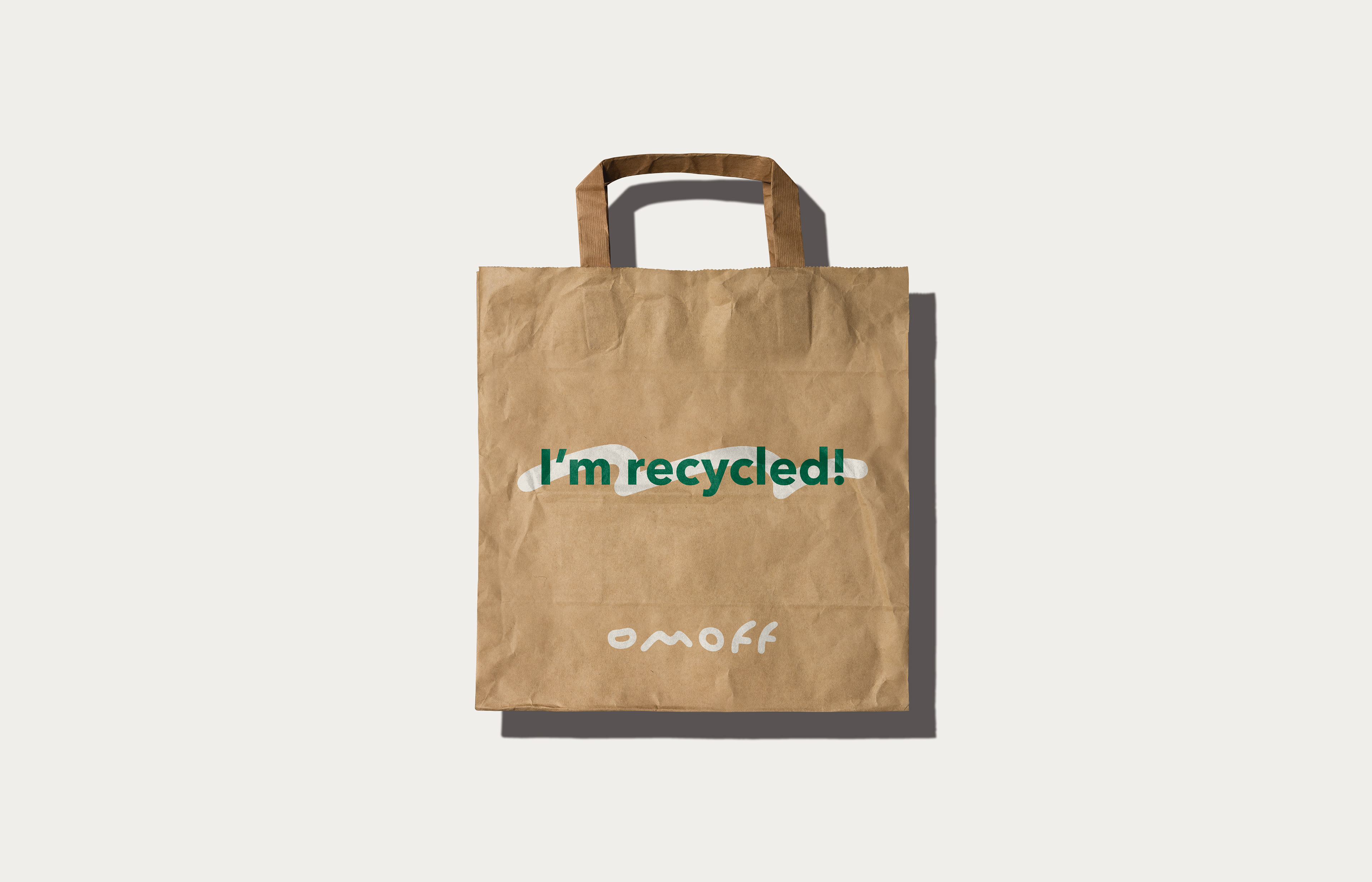 OMOFF’s logotype, designed with a freely drawn typeface, encapsulates the brand’s pursuit of sustainable happiness through its smooth and organic form. Additionally, by choosing OMOFF Green and OMOFF Beige as the main colors, the design strengthens the brand’s image of promoting nature-friendly and healthy lifestyles. With lively and rhythmic forms, along with a simple, fun, and bright mood, the design expresses the free-spirited brand ethos of enjoying the present moment.