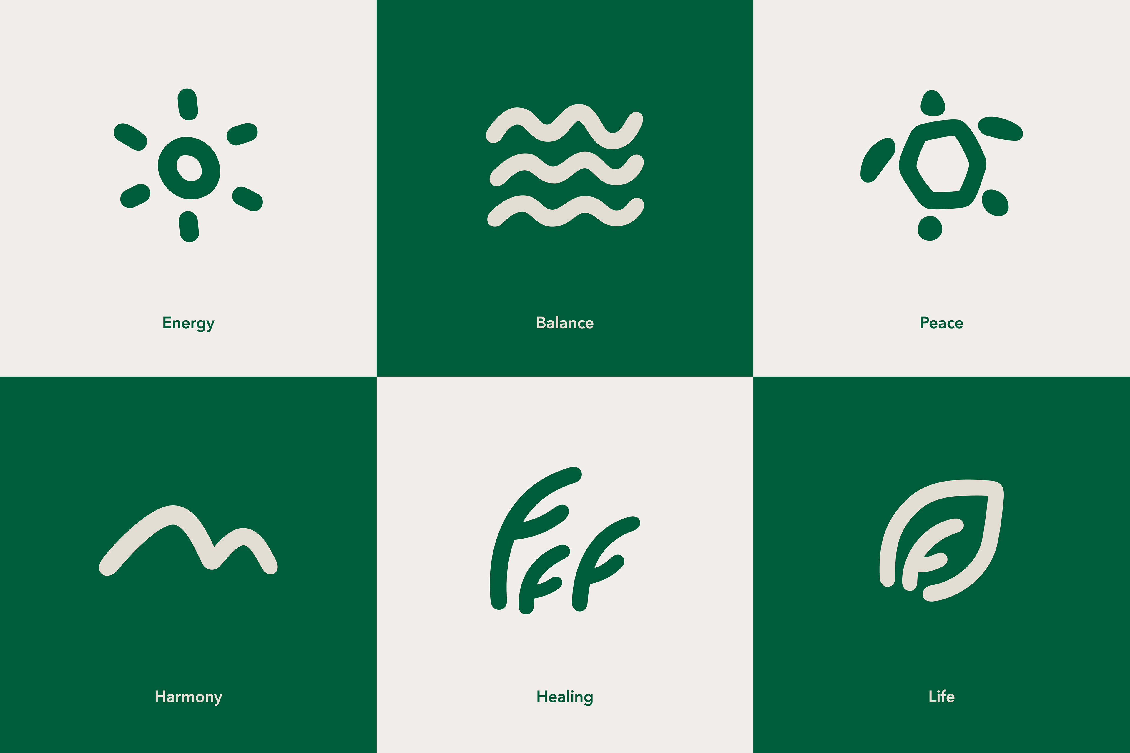 The main graphic element of OMOFF is a line motif symbolizing the deep sound produced when chanting ‘OM,’ signifying the beginning and end of yoga. This dynamic form, adaptable organically based on different situations through a design system, communicates OMOFF’s brand values that respect individual personalities and lifestyles. Moreover, icons and patterns symbolizing the values conveyed by yoga have been developed to create a rich visual system with flexible application across various media.