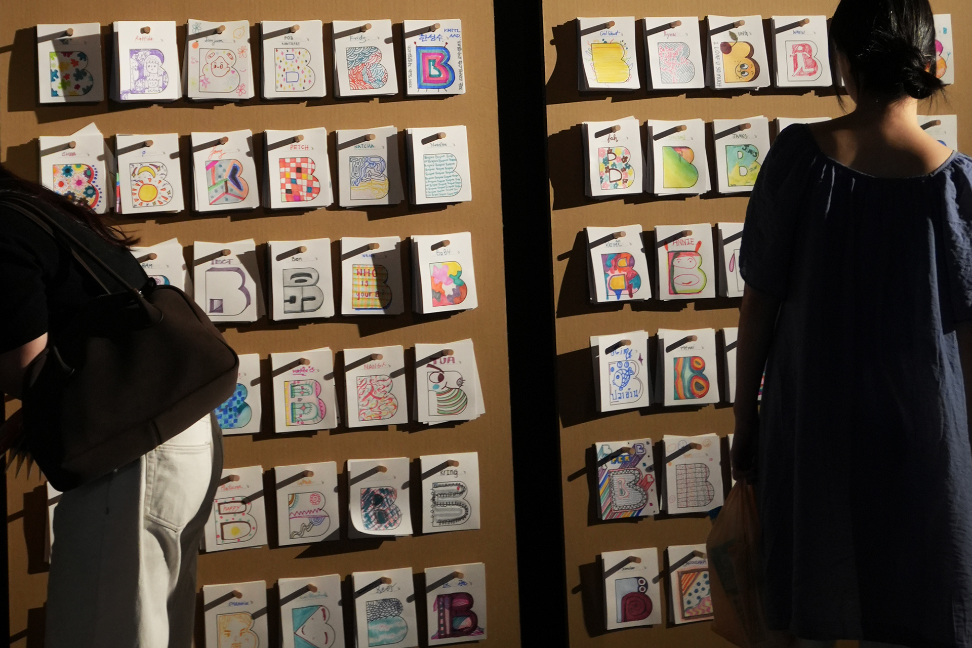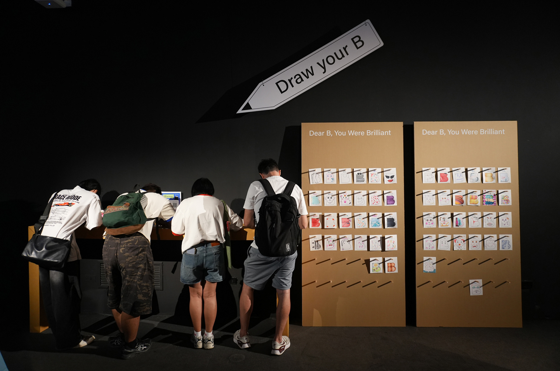 The 'Draw your B' zone was an interactive space where visitors created and displayed their own "B-cut" designs. This allowed participants to contribute their unique perspectives to the exhibition’s theme while drawing inspiration from the diverse works of others.