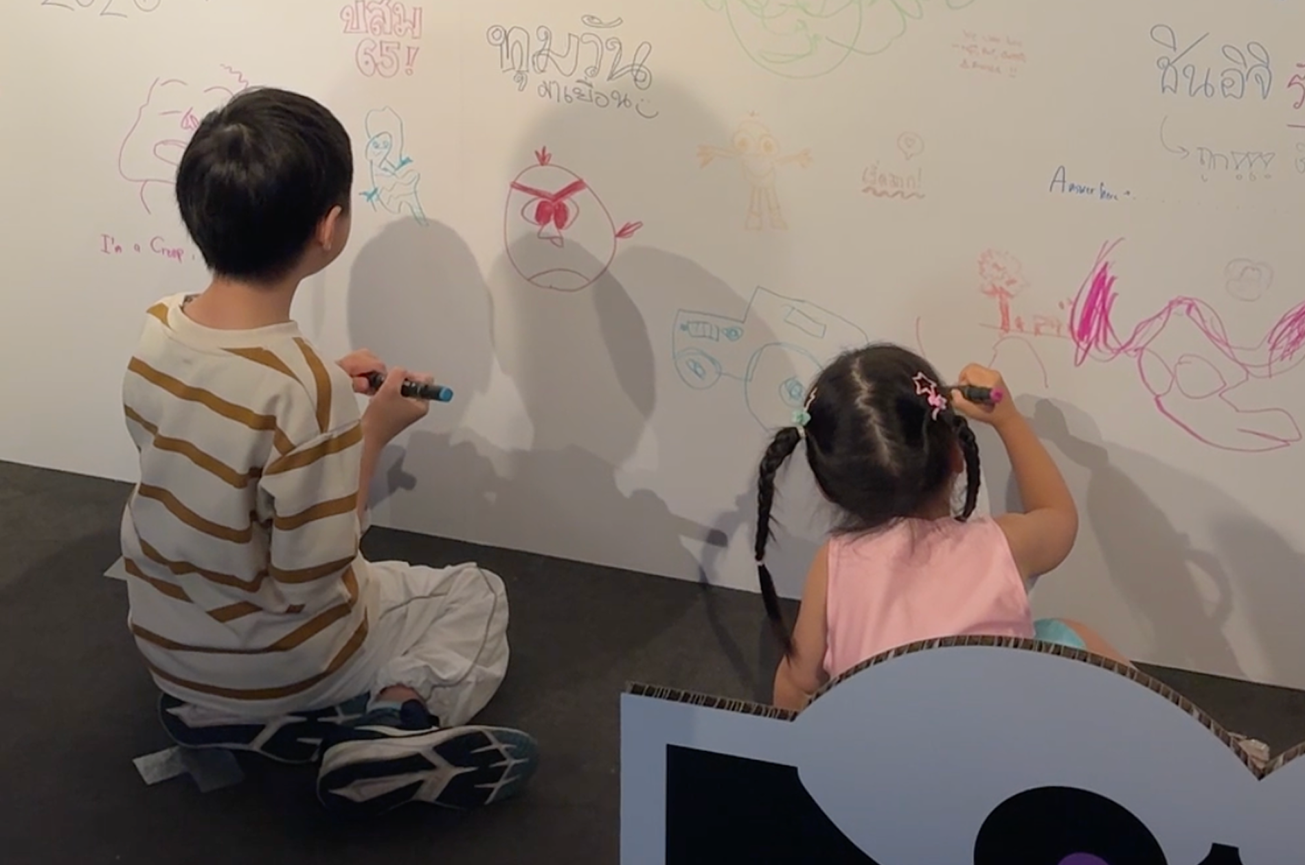 방명록 공간도 예상을 뛰어넘는 뜨거운 참여로 가득 찼습니다. 한글, 영어, 태국어 메세지 뿐만 아니라 높은 수준의 위트있고 독창적인 그림들로 준비된 전면이 모두 채워지고 측면까지 덧칠하며 남겨주신 관객들의 열정적인 반응이 인상적이었습니다. 전시에 보내주신 관객들의 적극적인 사랑에 진심으로 감사를 표합니다.