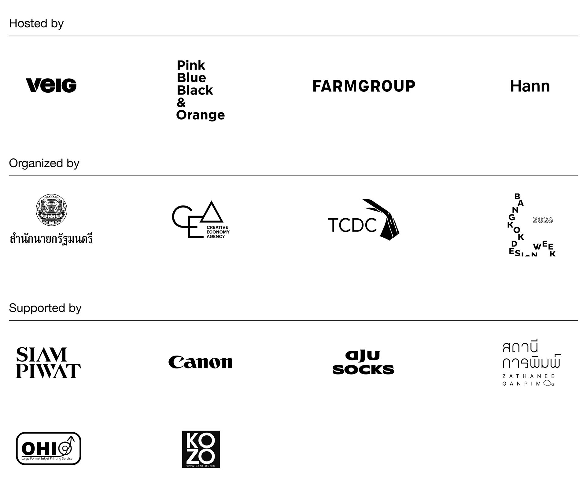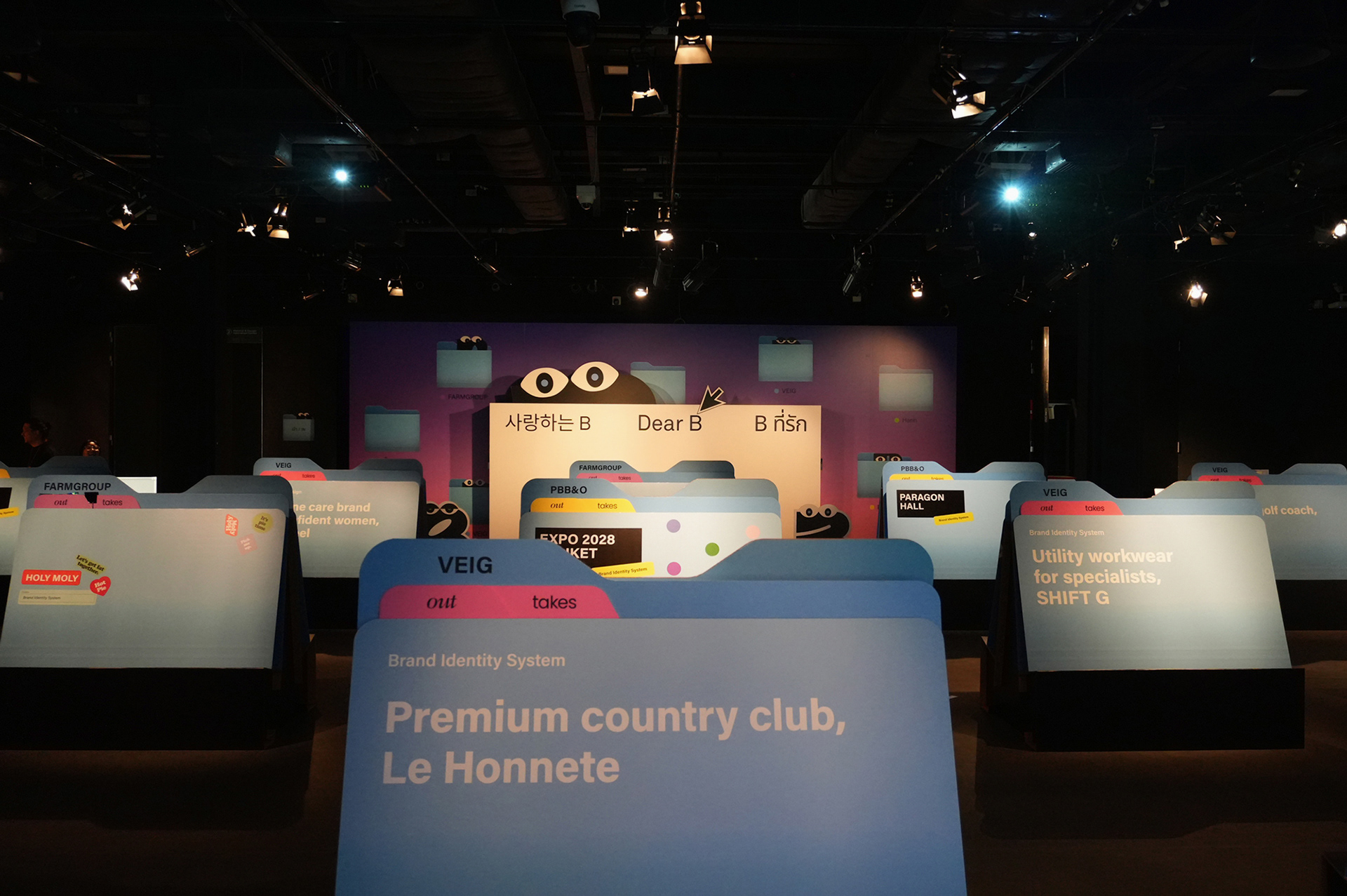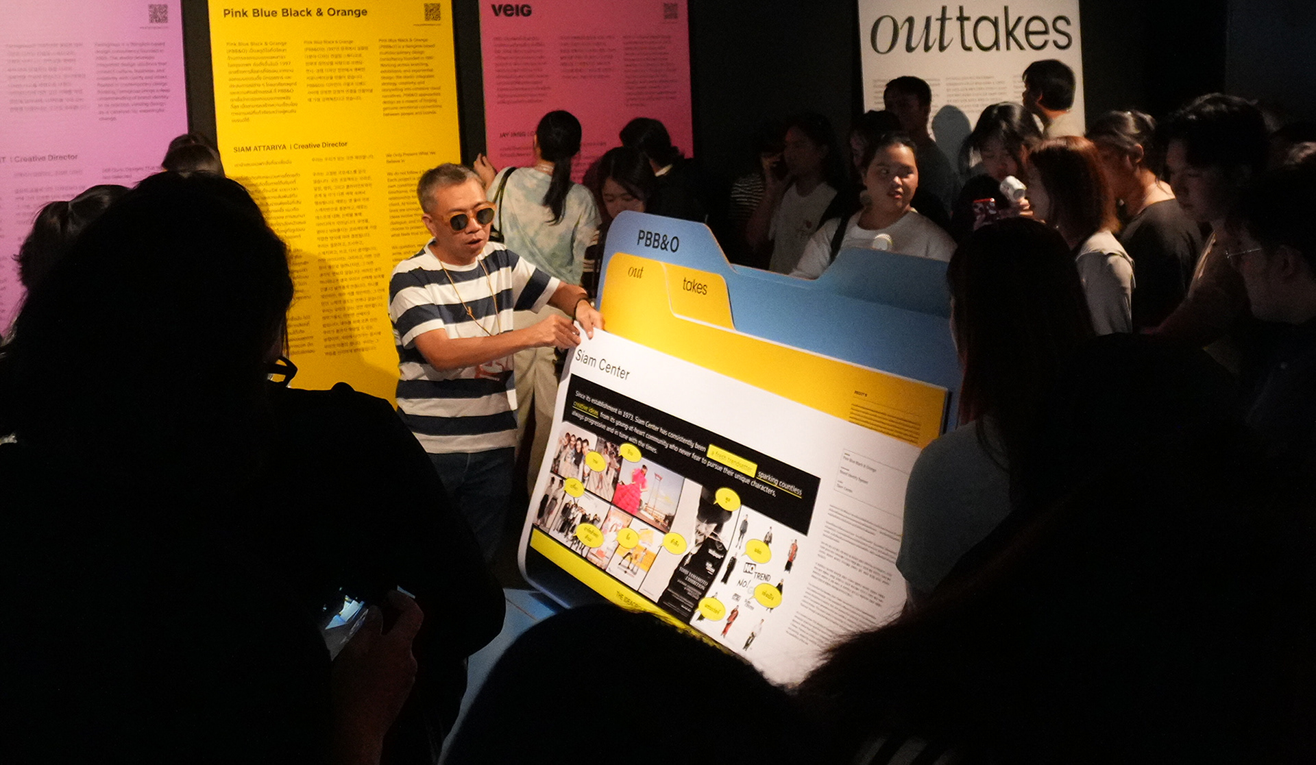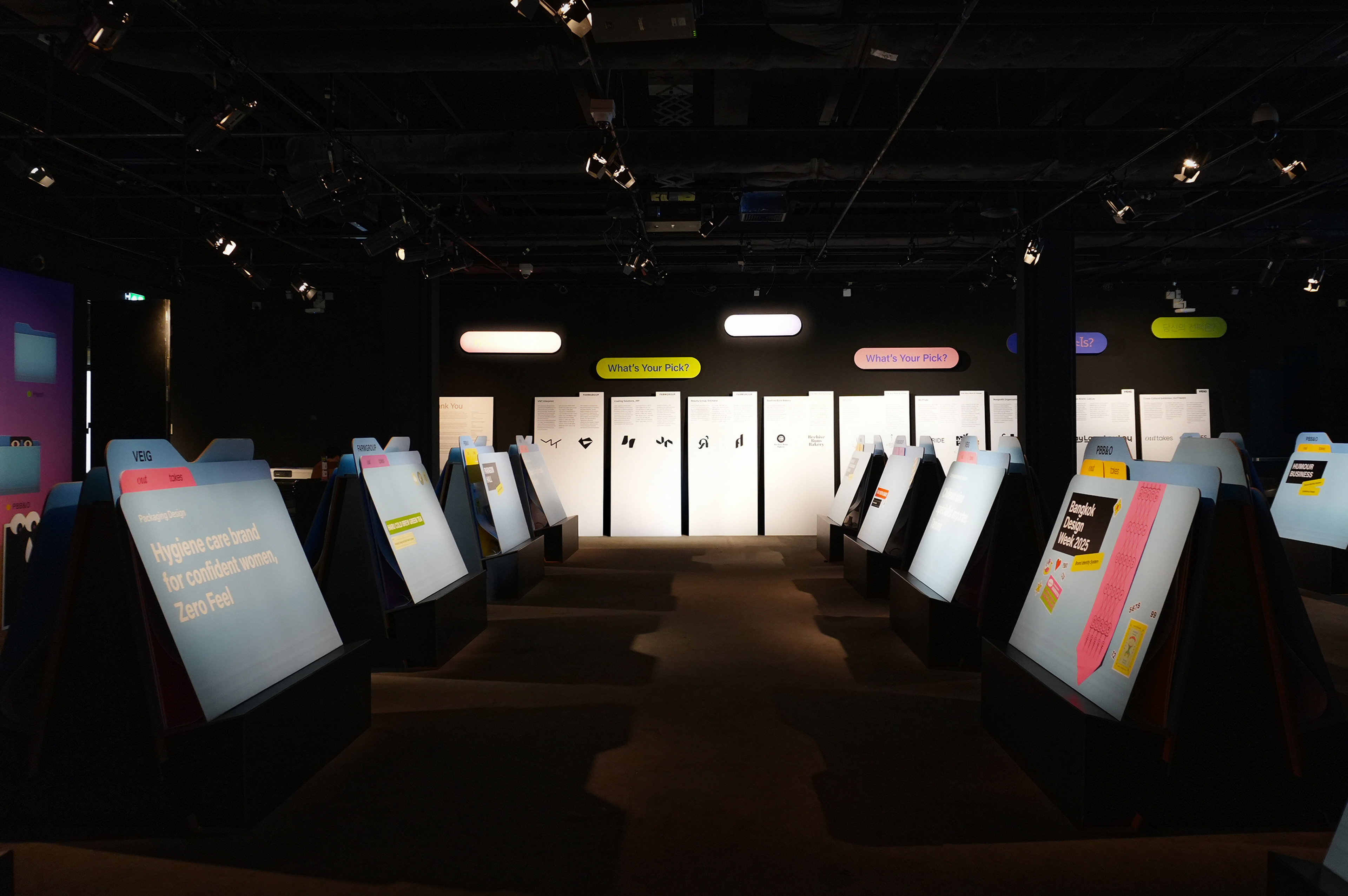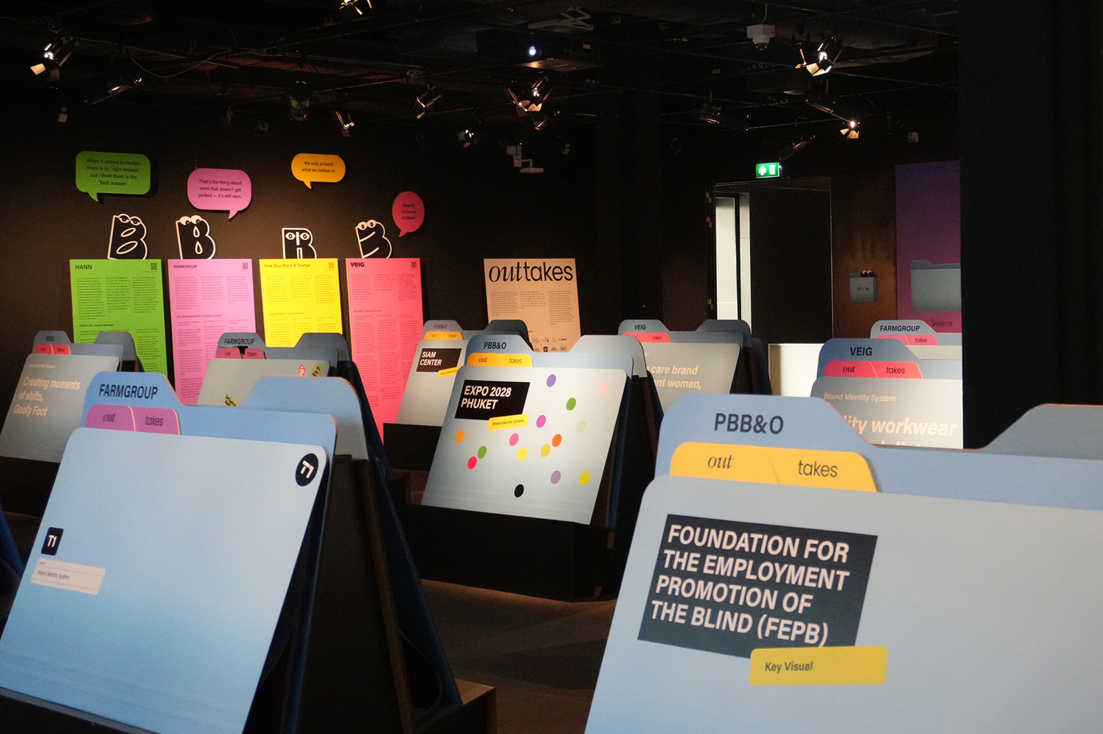 OUTTAKES는 한국의 VEIG, 태국의 PBB&O, FARMGROUP과 이현경님이 협력하여 각 사의 ‘선택되지 않은 시안(B-cut)’을 모아 공유하는 프로젝트입니다. OUTTAKES는 지난해 9월 오픈한 온라인 전시에 이어, 2026년 초 방콕 디자인 위크 메인 갤러리에서 오프라인 전시를 개최했습니다. 이번 전시는 방콕 디자인 위크가 진행되는 2주간 각종 매체와 방문객들로 북적이며 많은 관심 속에 성공적으로 개최 되었습니다.