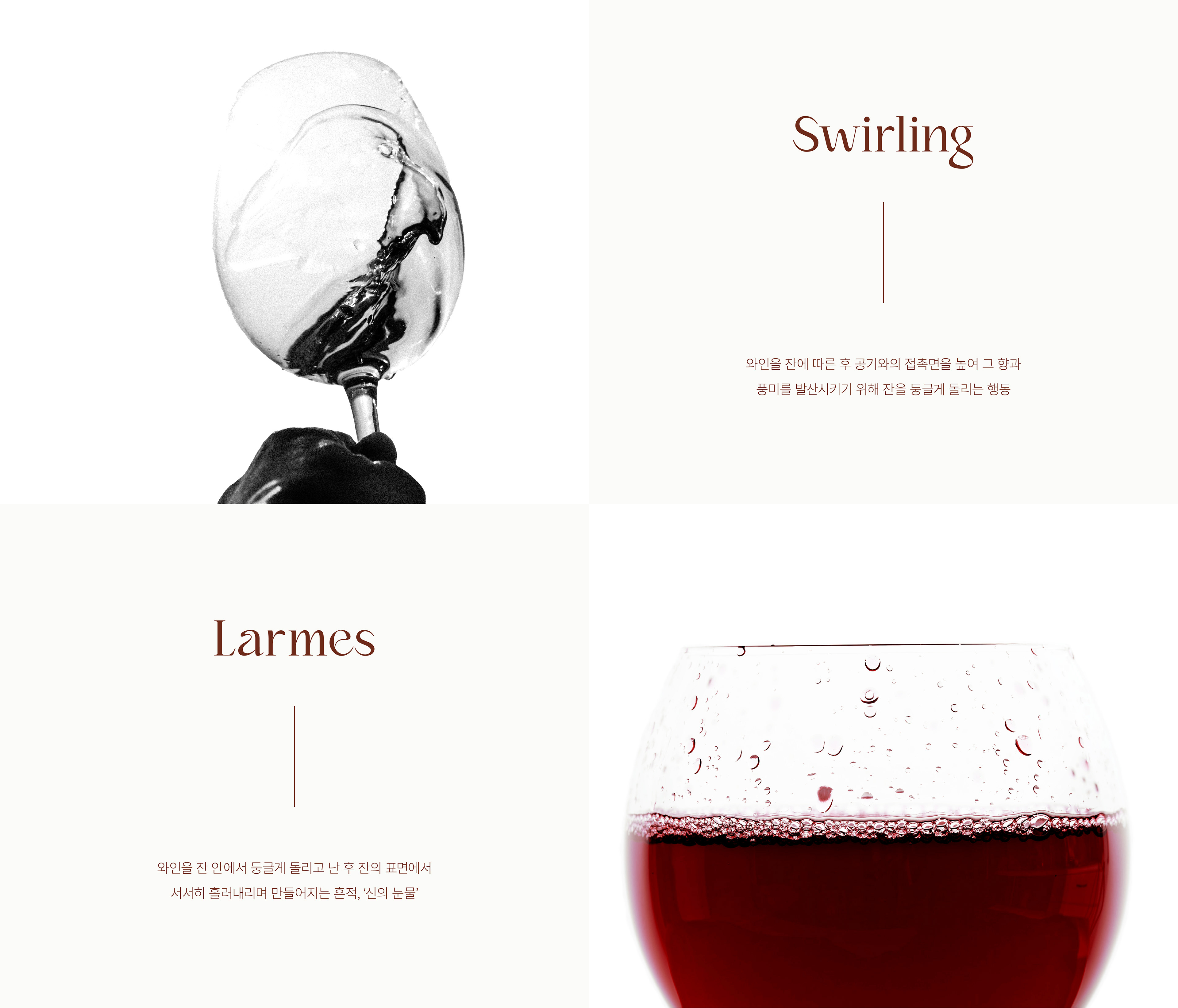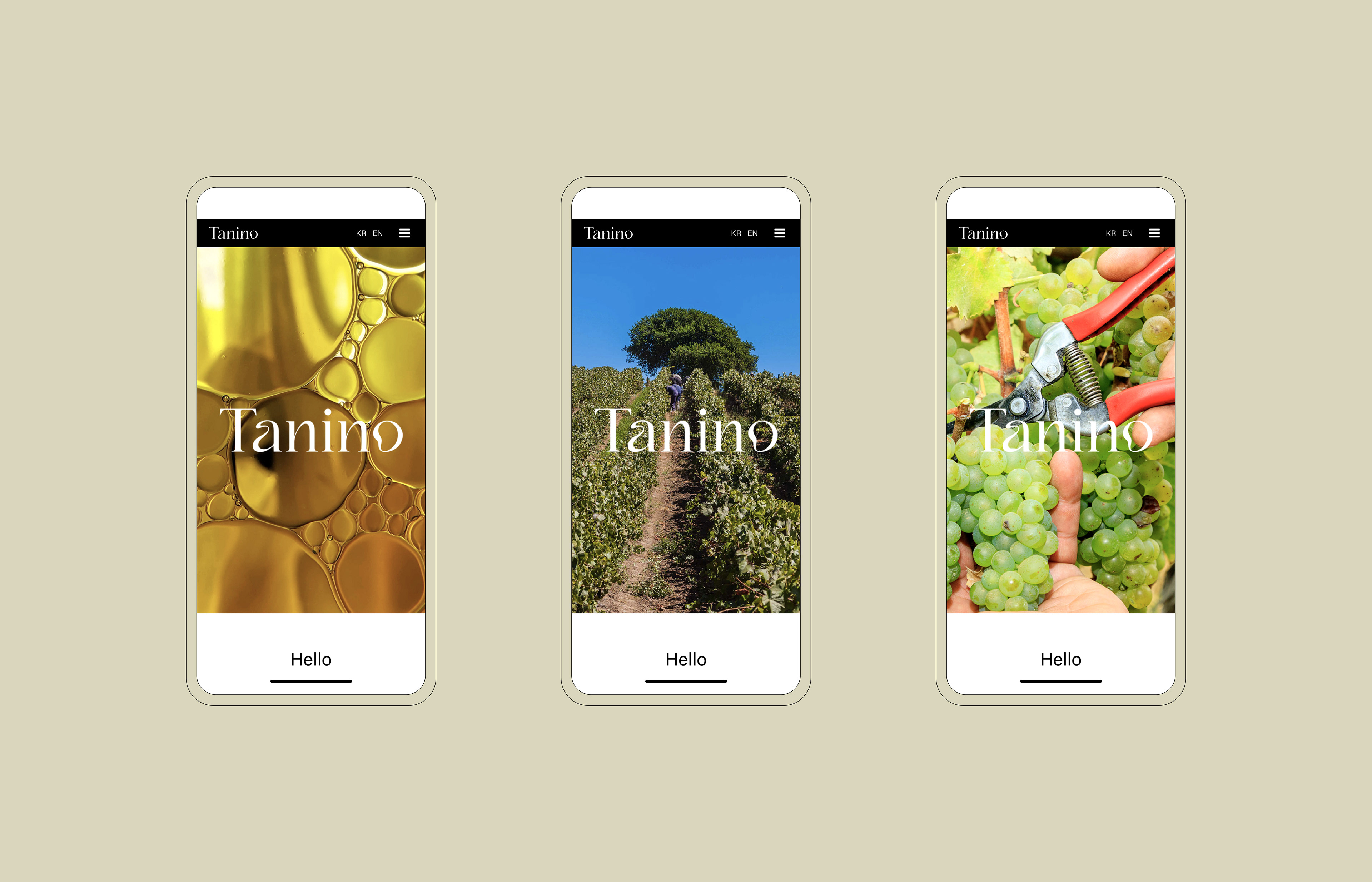 와인이 주는 설렘과 일렁이는 무브먼트를 세련된 세리프 서체에 담아 와인을 마실 때 시시각각으로 변하는 맛과 향, 그리고 분위기를 표현하였습니다. 더불어 천혜의 테루아가 선사하는 풍부한 풍미, 국내에 소개되지 않은 특별한 와인을 현지인이 직접 선별하여 소개하는 타니노의 가치를 깊은 감도의 색감과 풍성한 질감의 소재를 통해 시각화하였습니다.