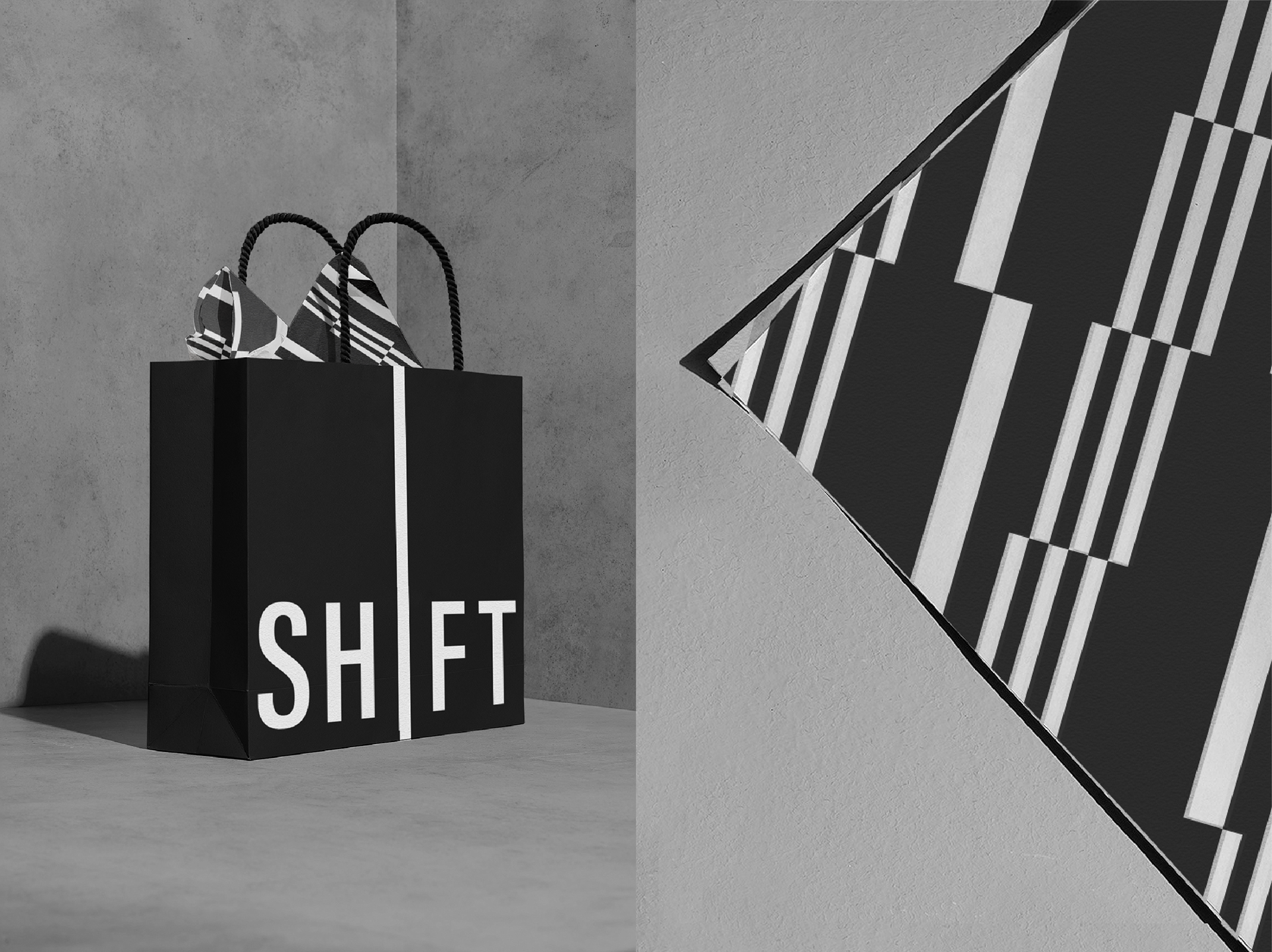워드마크 중앙의 알파벳 ‘I’이자 주요 그래픽 요소인 Standard Line은 SHIFT G가 제안하는 트렌드와 스타일의 기준을 상징하며 브랜드의 정체성을 강화하는 역할을 합니다. 그리고 브랜드의 컬러는 Monochromatic Black으로 중립적인 컬러 운용을 통해 지속적이면서도 다채롭게 업데이트되는 트렌드를 충돌 없이 담아낼 수 있도록 디자인하였습니다.