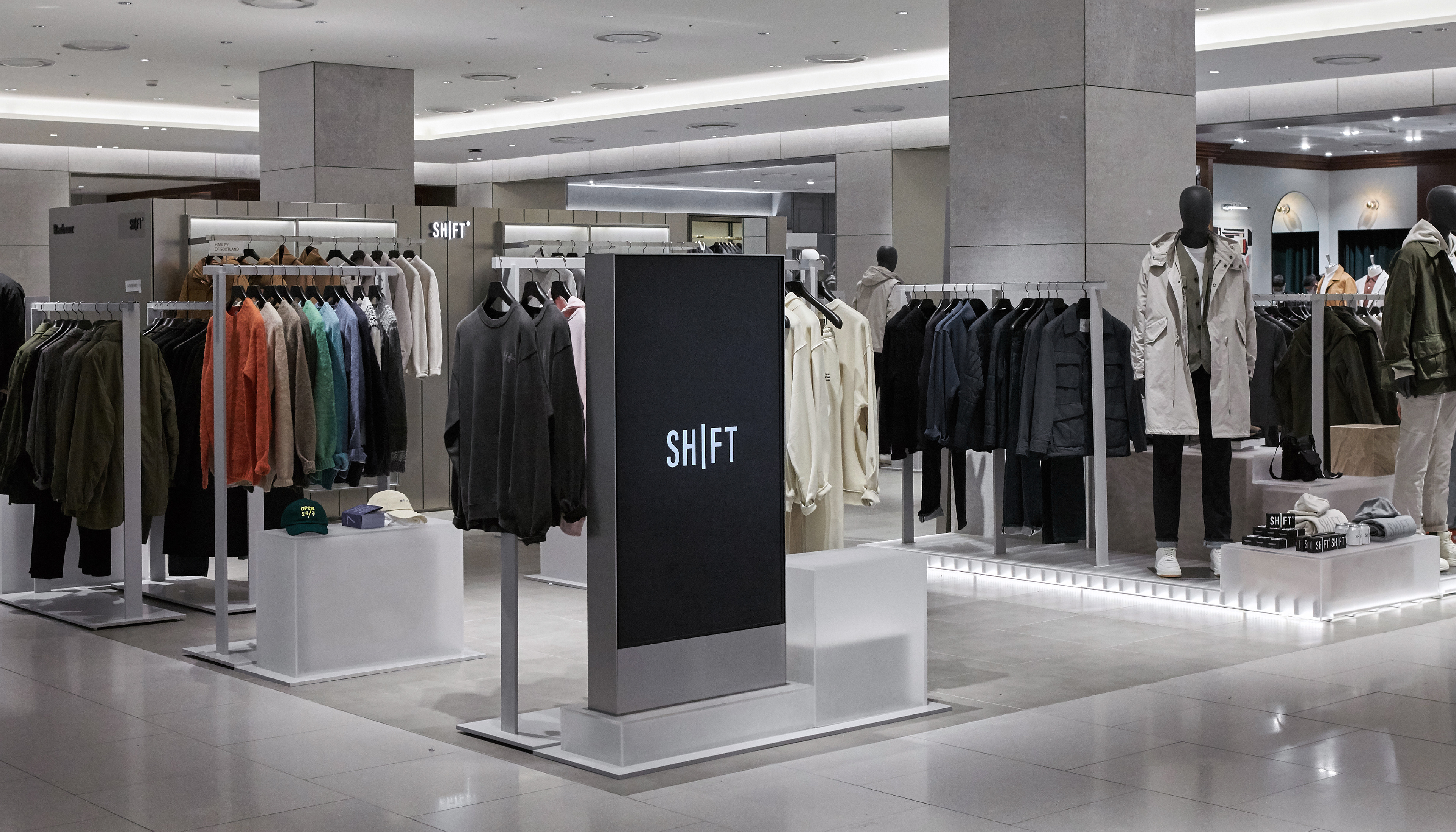 컨템포러리 남성복 브랜드 SHIFT G의 아이덴티티를 개발하였습니다. 삼성물산패션부문에서 30여년 만에 신규 런칭한 브랜드 SHIFT G는 코로나 이후 바뀐 근무 환경, 업무와 일상의 경계가 모호해지면서 변화된 현대인의 라이프스타일에 최적화된 아이템에 대한 니즈로부터 시작되었습니다. 출근복이자 일상복, 편안함과 동시에 격식 있는 Utility Workwear를 지향하는 의류를 비롯하여, 업무 공간이자 일상을 보내는 주거 공간을 채워줄 라이프 스타일 아이템들을 선별하여 제안하는 브랜드, SHIFT G를 위한 아이덴티티를 기획하고 개발하였습니다.
